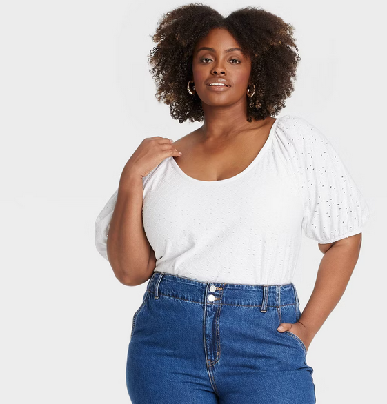 Women’s Puff Short Sleeve Eyelet Peasant Top
